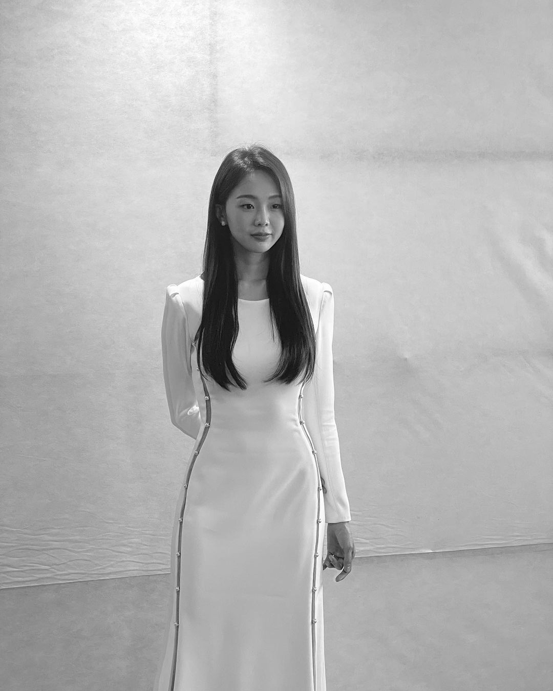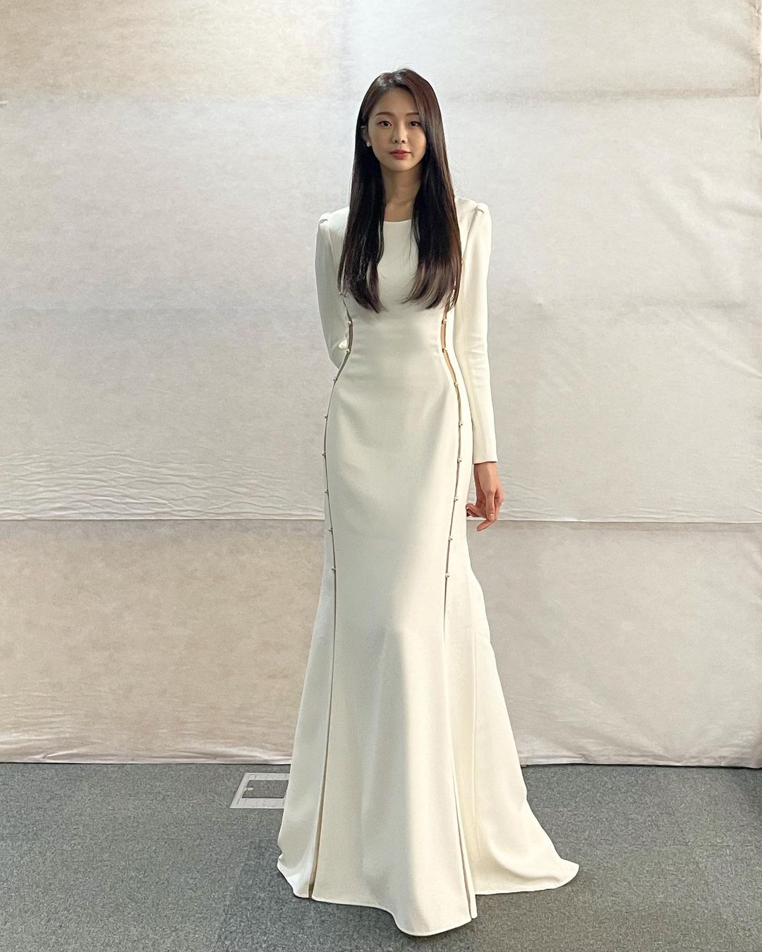 금새록의 화이트 드레스로 단아한 모습을 보여주고 있다.