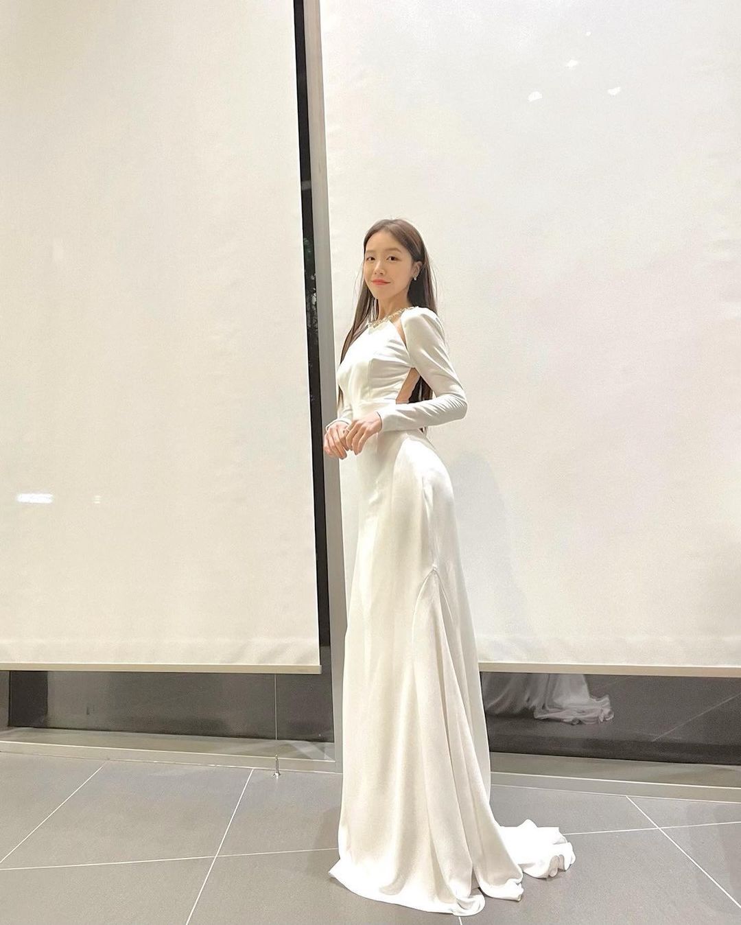 여배우 방민아는 12월 30일, 서울 상암동 MBC에서 열린 ’2021 MBC 연기대상’ 시상식에 참석해 포즈를 취하고 있다.