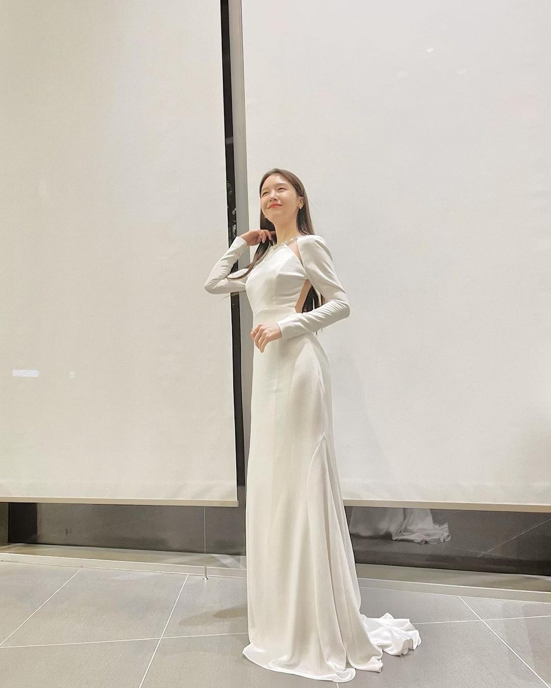 등이 보이는 시스루 드레스에 골반이 보이는 실루엣으로 방민아의 몸매를 그대로 잘 반영하였다.