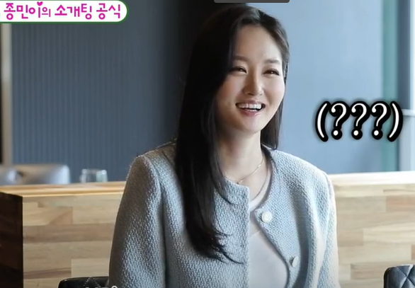 김종민의 소개팅녀는 이상형은 지혜롭고 현명한 남자이라고 하였다. 단어를 잘 몰라도 되냐는 김종민의 말에 연신 웃음을 내비추었다.