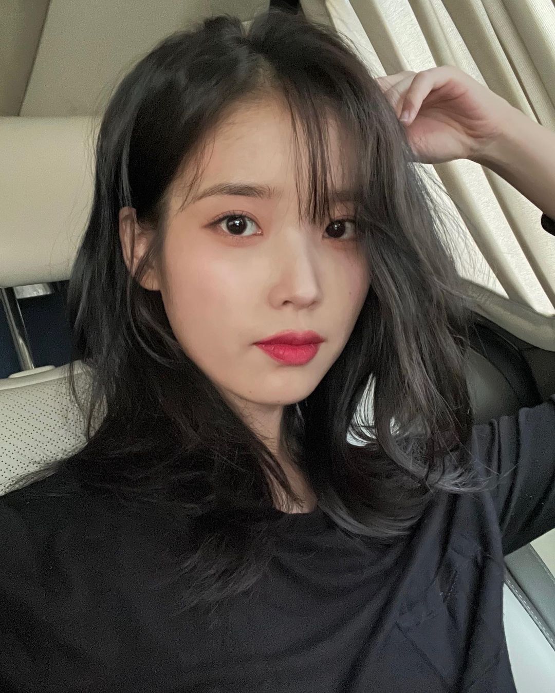 무더운 날씨에 아이유는 차안에서 블랙룩을 선보였다.