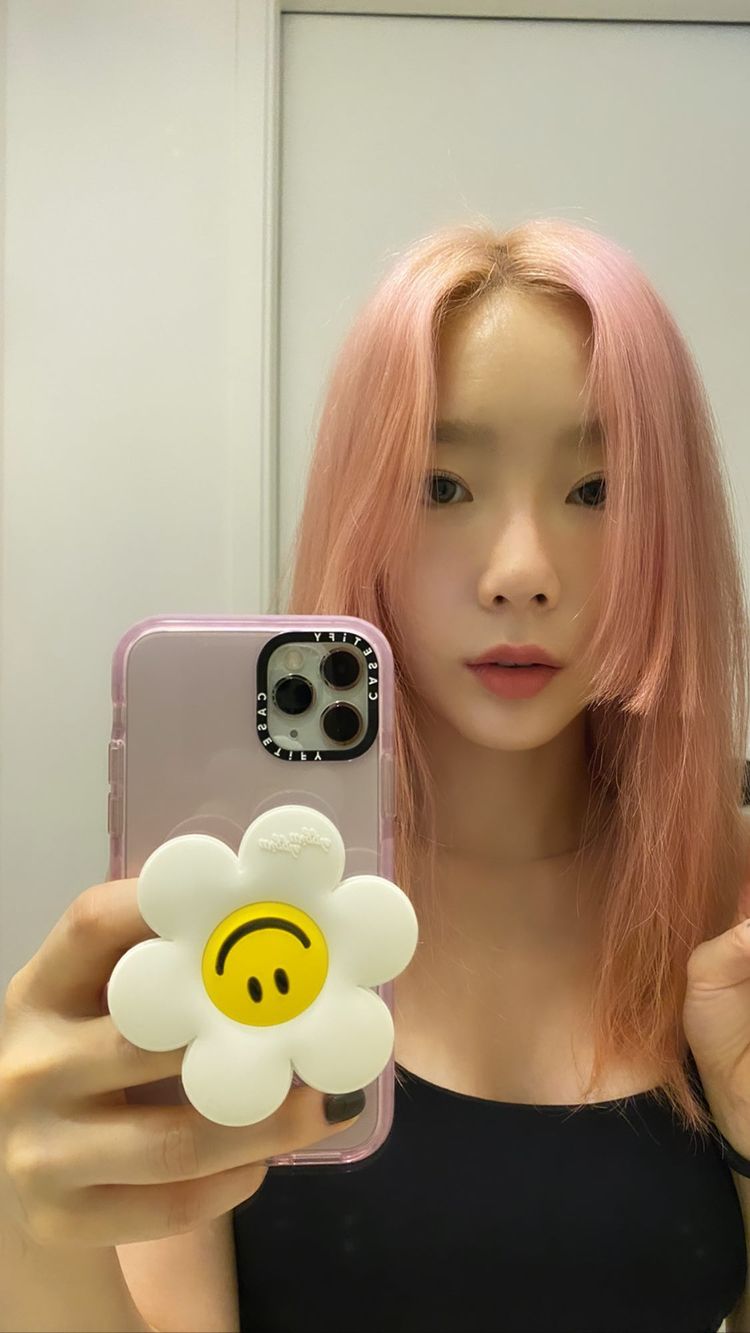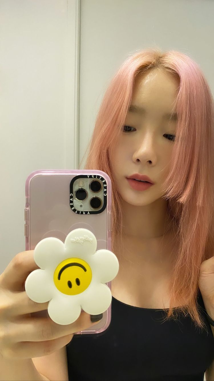 소녀시대 태연의 빨갛게 염색한 머리로 인스타에 나왔다.