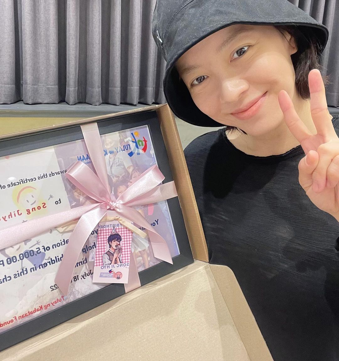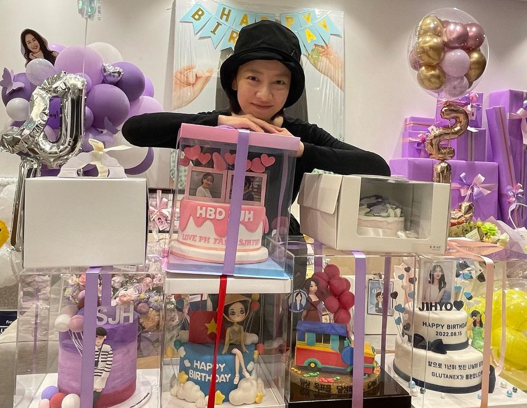 배우 송지효가 8월 15일 생일을 맞이하여 팬들에게 받은 선물들을 인증하며 즐거운 생일을 보냈다.
