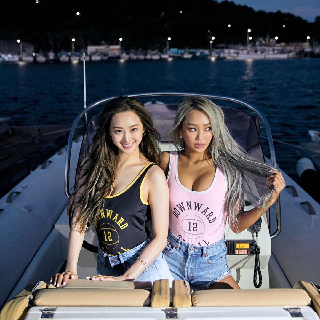 씨스타 다솜, 효린의 요트위 반 수영복 패션.
