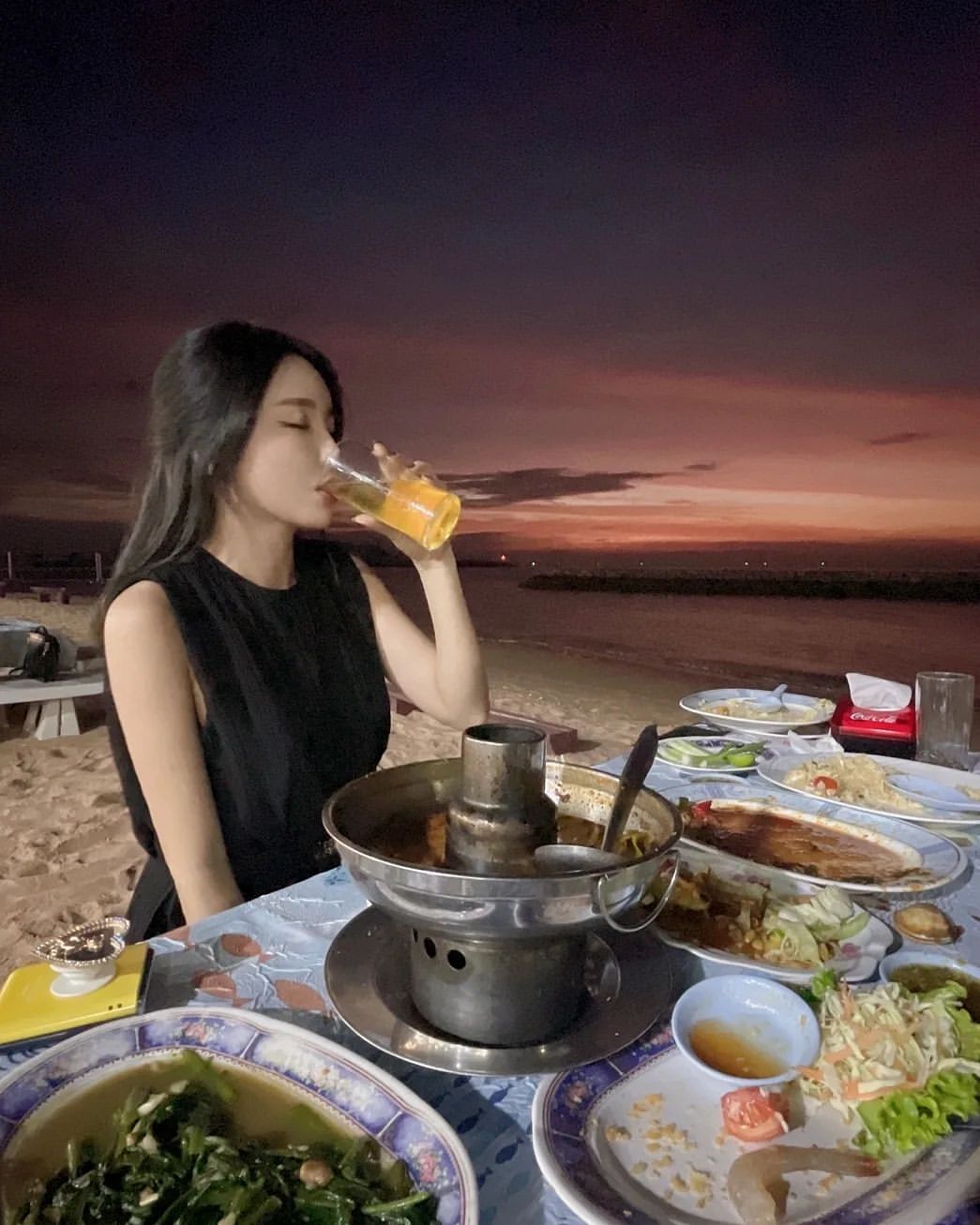 태국 여행을 가서 블랙룩 과시하는 홍진영