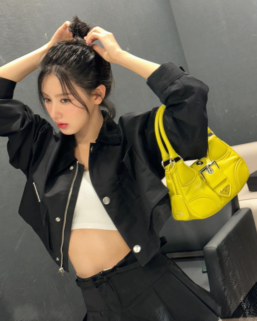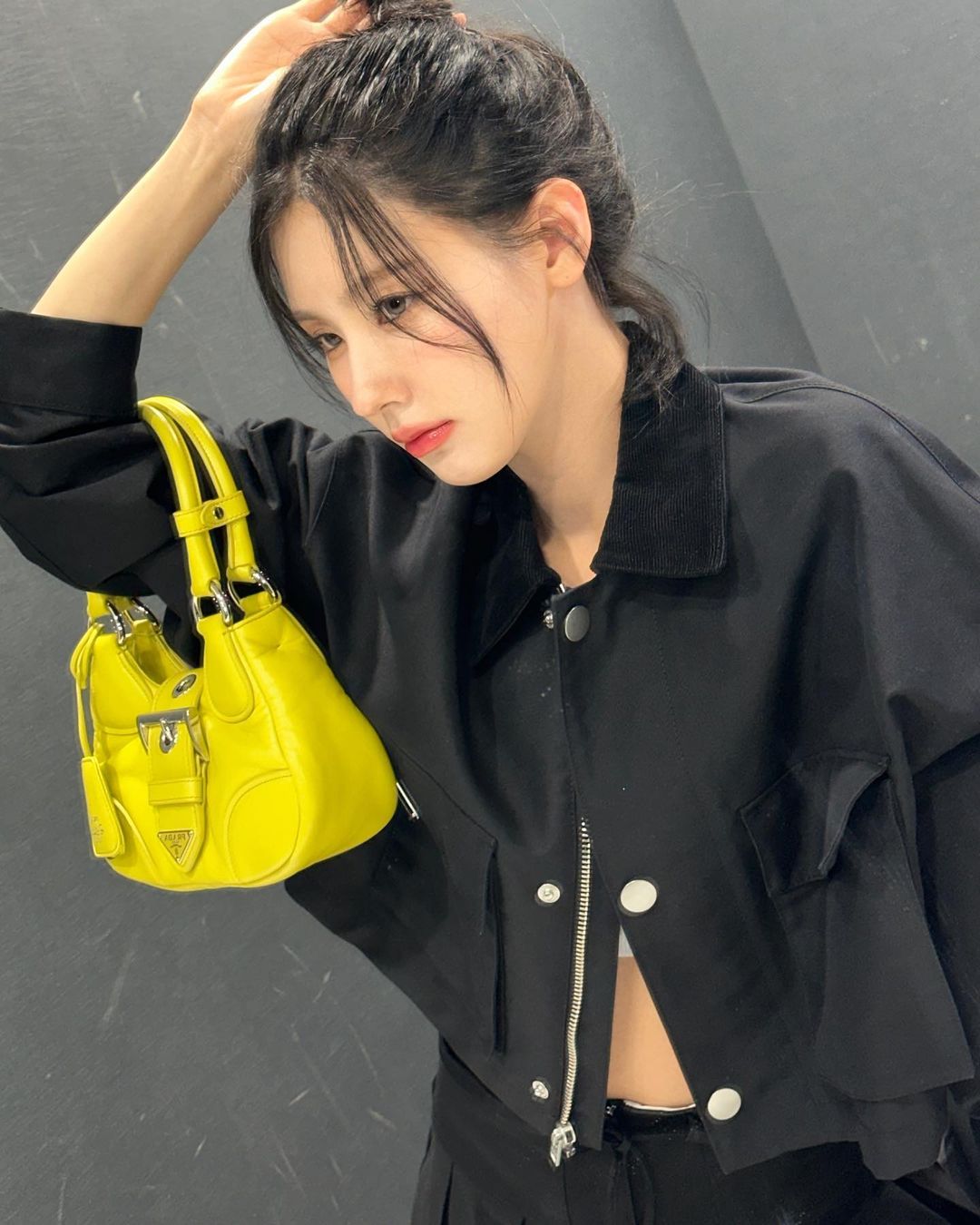 (여자)아이들 미연 프라다몬 백으로 연출을 하였다.