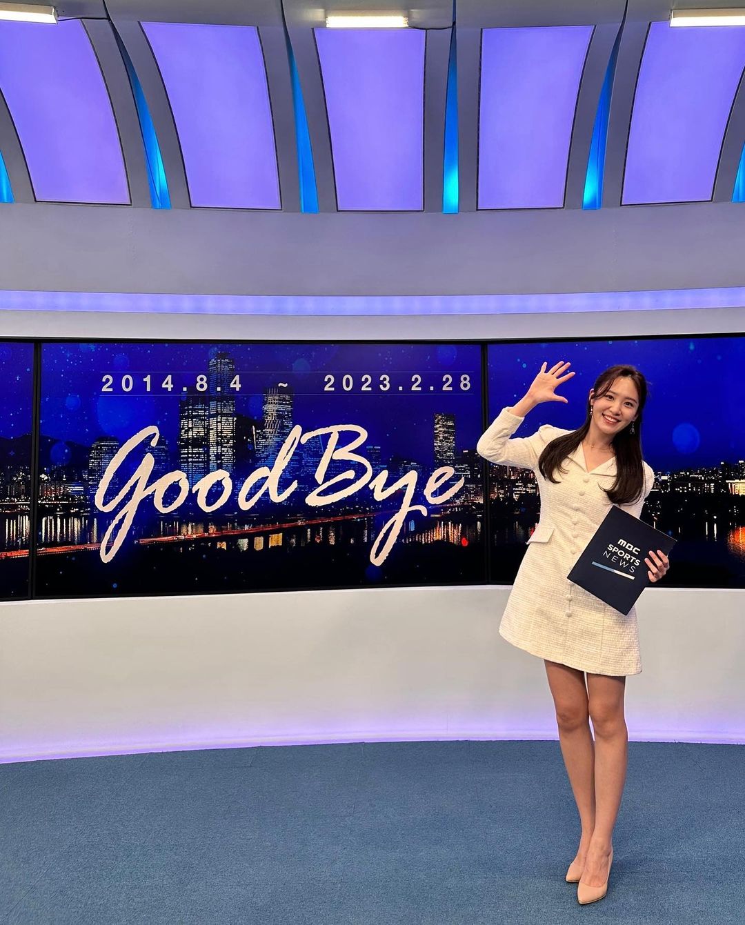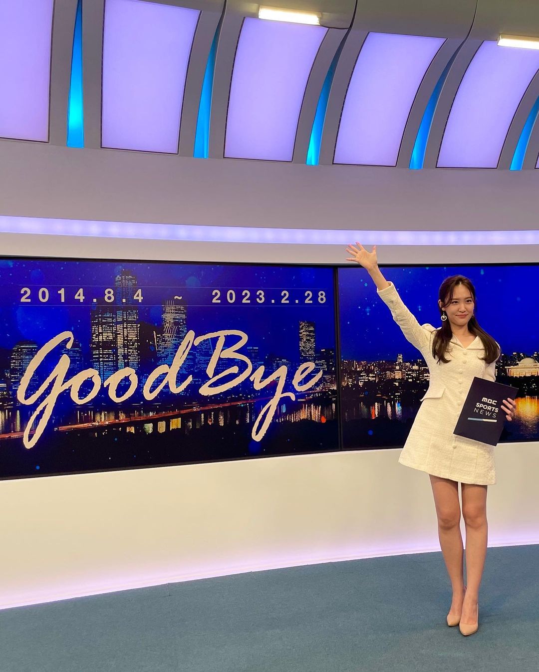 mbc 이영은 아나운서가 새단장 들어가는 뉴스센터와 작별인사를 하며, 마지막 인증샷을 남겼다.