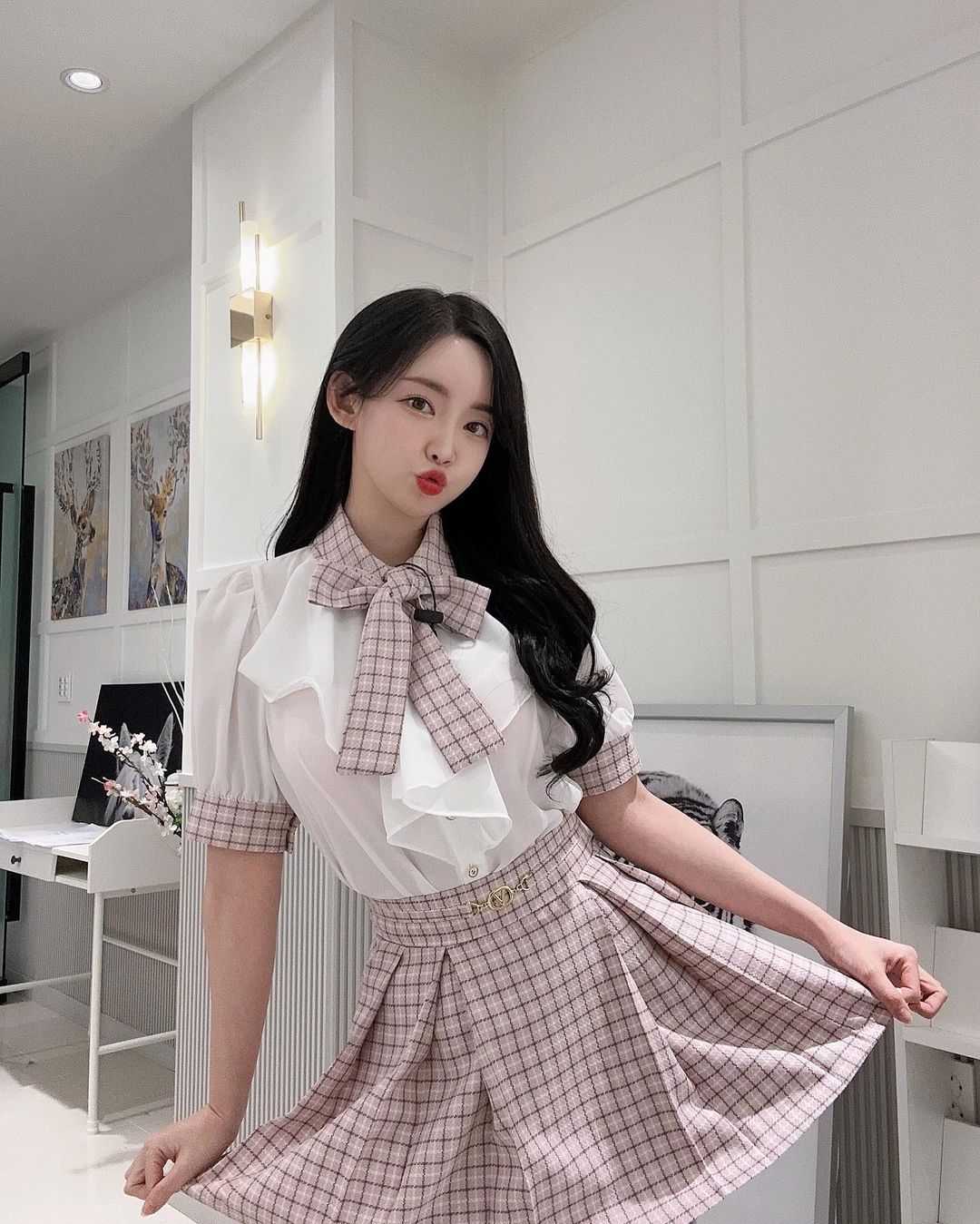 곽민선 아나운서가 교복 패션과 유사한 의상으로 등장하였다.