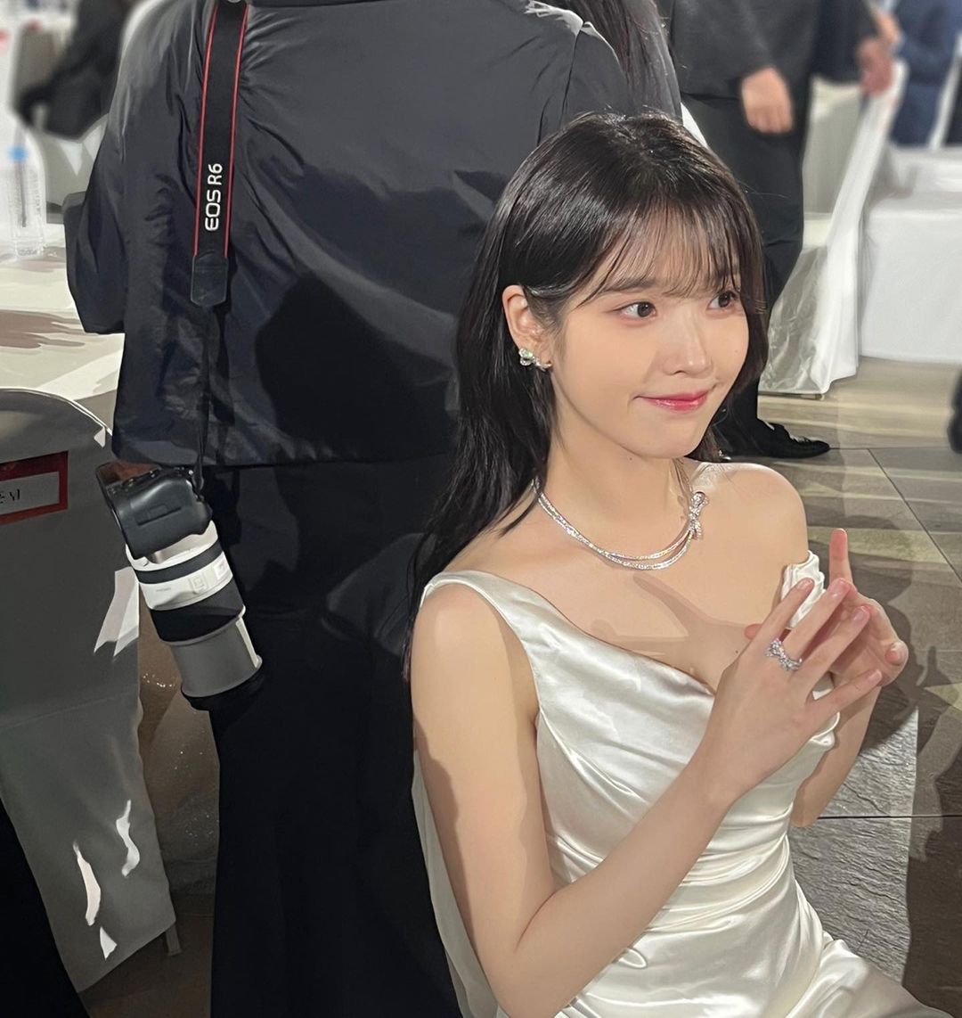 순백의 여신 드레스를 입고 나와 한층 더 미모를 빛나게 한 아이유 이기도 하다.