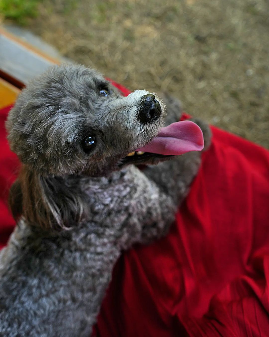 김다영 아나운서는 흰색 블라우스에 강렬한 레드 치마를 입고 로지와 행복한 일상을 보내고 있다.