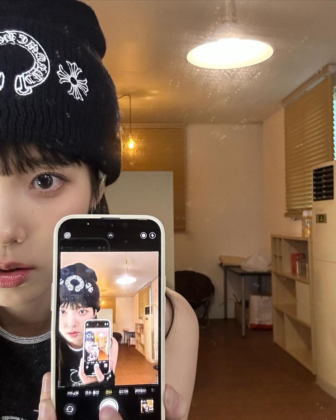아이유는 힙하게 털모자를 쓰고 다양한 표정을 보여주었다.