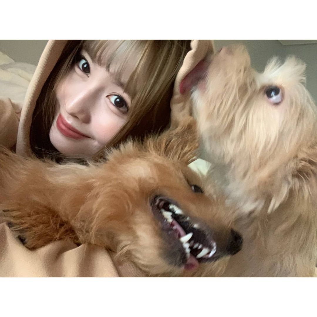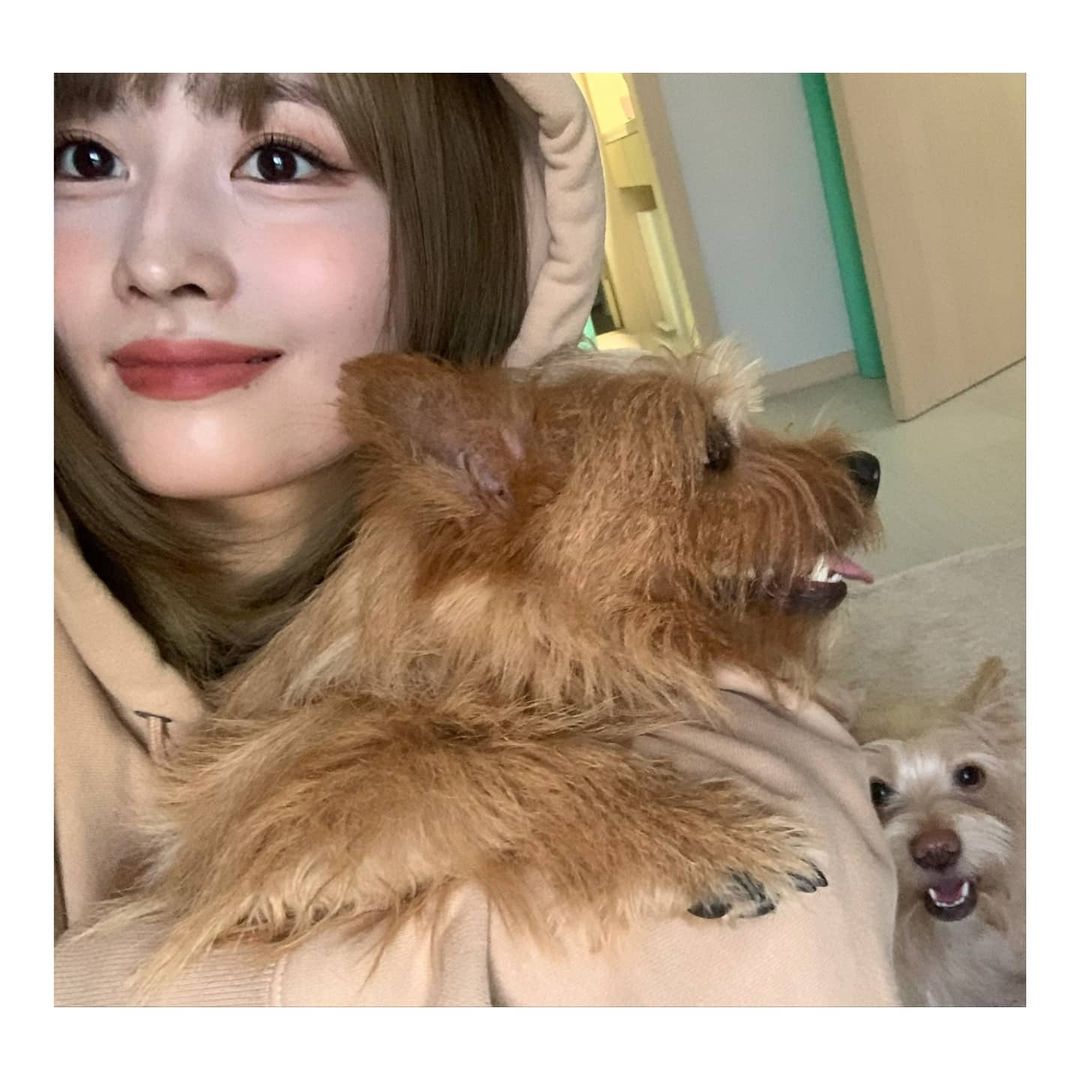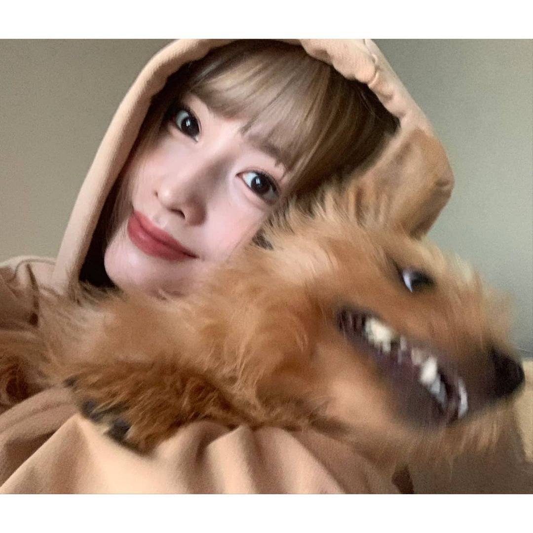 브라운 머리색에 브라운 후드티를 입어 댕댕이와 색깔을 깔맞춤 한듯 하다.