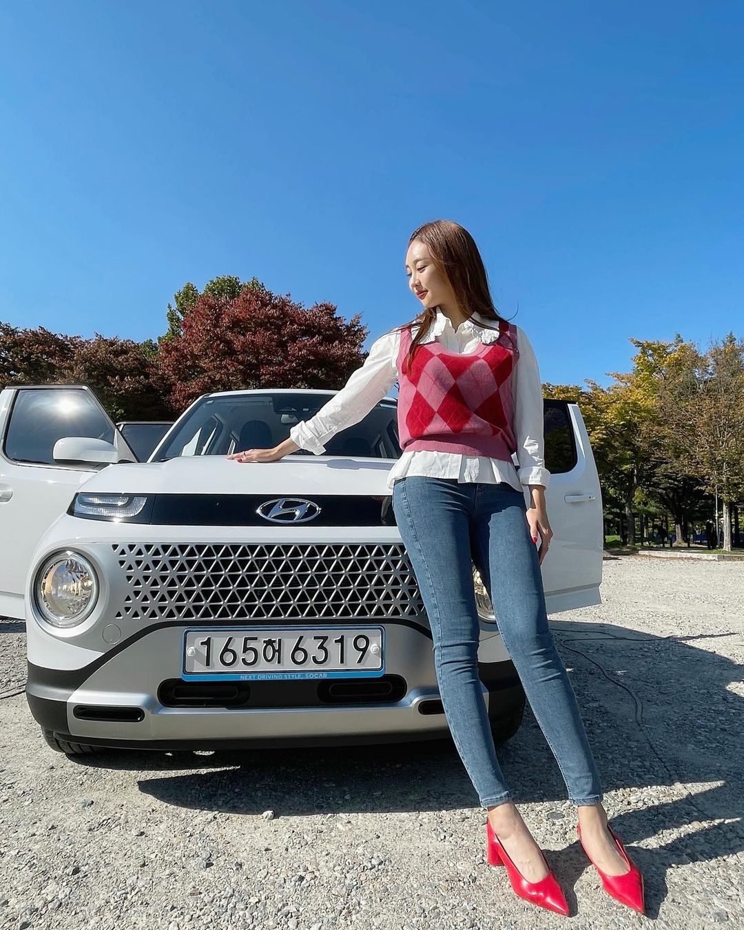 빨간 구두에 포인트를 둔 박지영 아나운서.