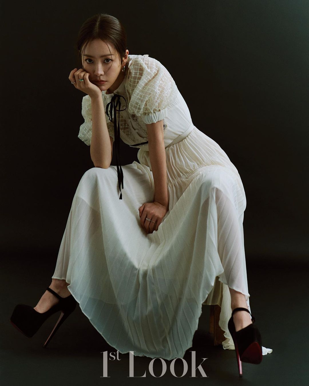 한지민의 1stLook 화보에서 파격적인 드레스 차림과 아찔한 포즈로 한지민의 또다른 모습을 살펴볼 수 있다.
